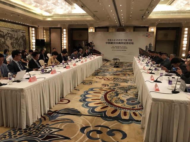 此次論壇是中韓建交25周年的系列活動(dòng)之一,主辦雙方旨在通過(guò)智庫(kù)交流進(jìn)一步推進(jìn)中韓公共外交,為兩國(guó)關(guān)系的恢復(fù)和平穩(wěn)健康發(fā)展貢獻(xiàn)積極力量。致辭嘉賓還包括韓國(guó)前駐華大使、未來(lái)研究院院長(zhǎng)辛正承,盤古智庫(kù)理事長(zhǎng)易鵬,盤古智庫(kù)學(xué)術(shù)委員會(huì)名譽(yù)主任、中共中央對(duì)外聯(lián)絡(luò)部原副部長(zhǎng)于洪君,韓國(guó)外交部公共外交大使樸銀夏等。韓中未來(lái)研究院執(zhí)行委員、前外交官丁相基,盤古智庫(kù)專家張璉瑰、朱鋒、高揚(yáng)、王棟、岳立、安剛、梁亞濱等參加了主題發(fā)言和討論環(huán)節(jié),針對(duì)過(guò)去25年間中韓關(guān)系發(fā)展歷程、目前中韓關(guān)系的癥結(jié)以及未來(lái)中韓關(guān)系發(fā)展方向等問題給出了意見與建議。