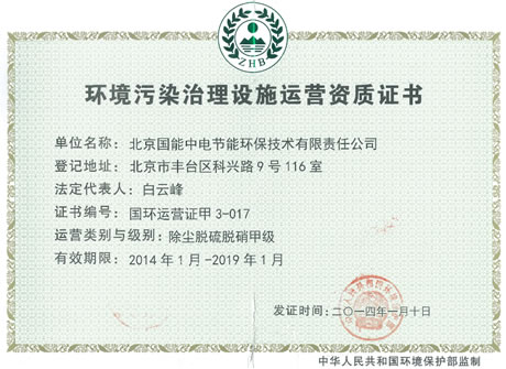 當(dāng)前位置: 國能中電公司動態(tài)> 我司喜獲環(huán)保部《環(huán)境污染治理設(shè)施運(yùn)營資質(zhì)甲級證書》