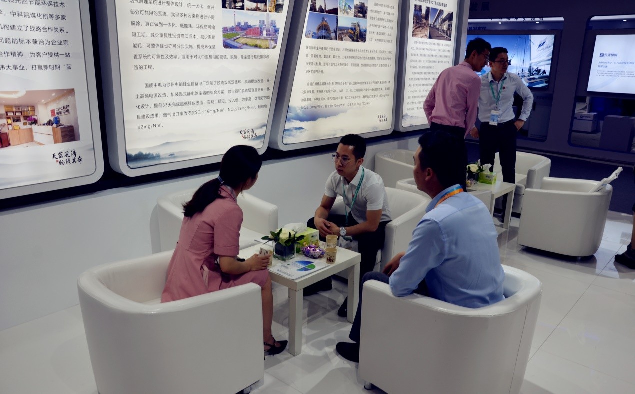 國能中電作為節(jié)能環(huán)保行業(yè)的領(lǐng)軍企業(yè),多年來致力于工業(yè)煙氣治理、超凈火力發(fā)電、生物質(zhì)能源利用、綠色金融服務(wù)和環(huán)保新材料研發(fā)等領(lǐng)域。在此次展會中,國能中電集中、全面、生動地展示了公司煙氣污染物協(xié)同脫除系統(tǒng)(SRS)—環(huán)保島、炭基催化劑干法煙氣多污染物一體化脫除技術(shù)、余熱閃蒸自結(jié)晶“3C-MED”脫硫廢水零排放技術(shù)、激光熔覆技術(shù)、環(huán)保浸金劑技術(shù)等多項優(yōu)勢核心技術(shù),以及環(huán)保裝置第三方運(yùn)維、環(huán)保核心設(shè)備生產(chǎn)等專業(yè)服務(wù)。