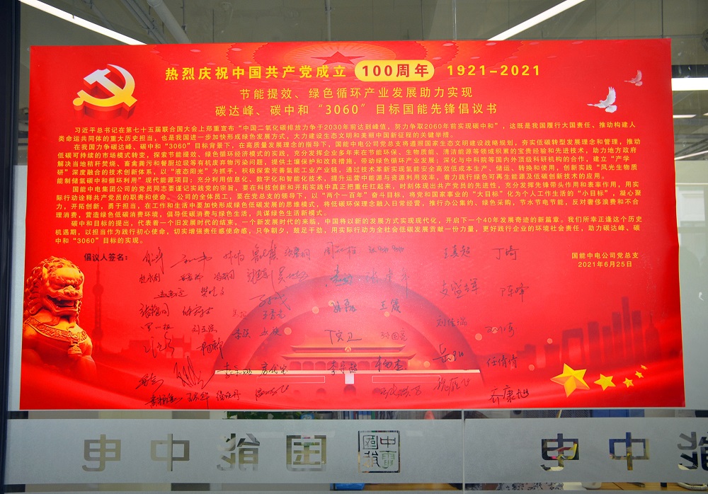 這是國能中電全體黨員及廣大員工對(duì)“3060” “碳中和”國家戰(zhàn)略的最佳解讀,是傳承紅色基因的莊嚴(yán)承諾,是踐行綠色使命的科學(xué)行動(dòng)。在公司未來的發(fā)展進(jìn)程中,我們將把黨性融入骨血,用先進(jìn)的環(huán)保設(shè)備控碳減碳,用高科技的環(huán)保技術(shù)守護(hù)綠水青山。